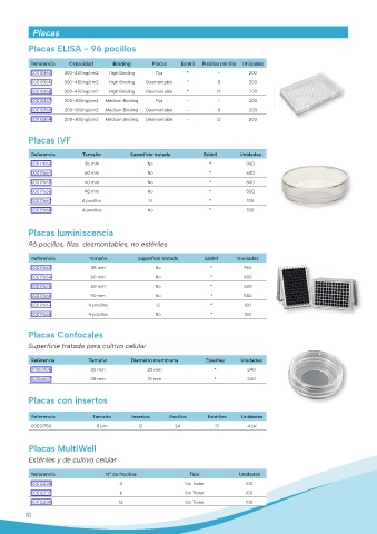 Referencia Capacidad Binding Placas Estéril Pocillos por fila Unidades
