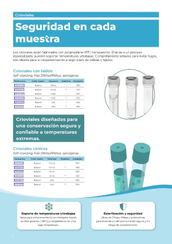 Aptos para almacenamiento en nitrógeno líquido Libres de DNasa, RNasa y endotoxinas,