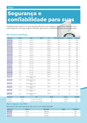 Referência Volume Tipo Estéril Cor DNAse/RNAse Free Pirogênico Unidades