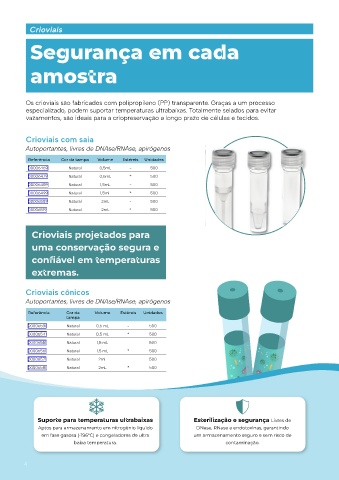 vazamentos, são ideais para a criopreservação a longo prazo de células e tecidos.